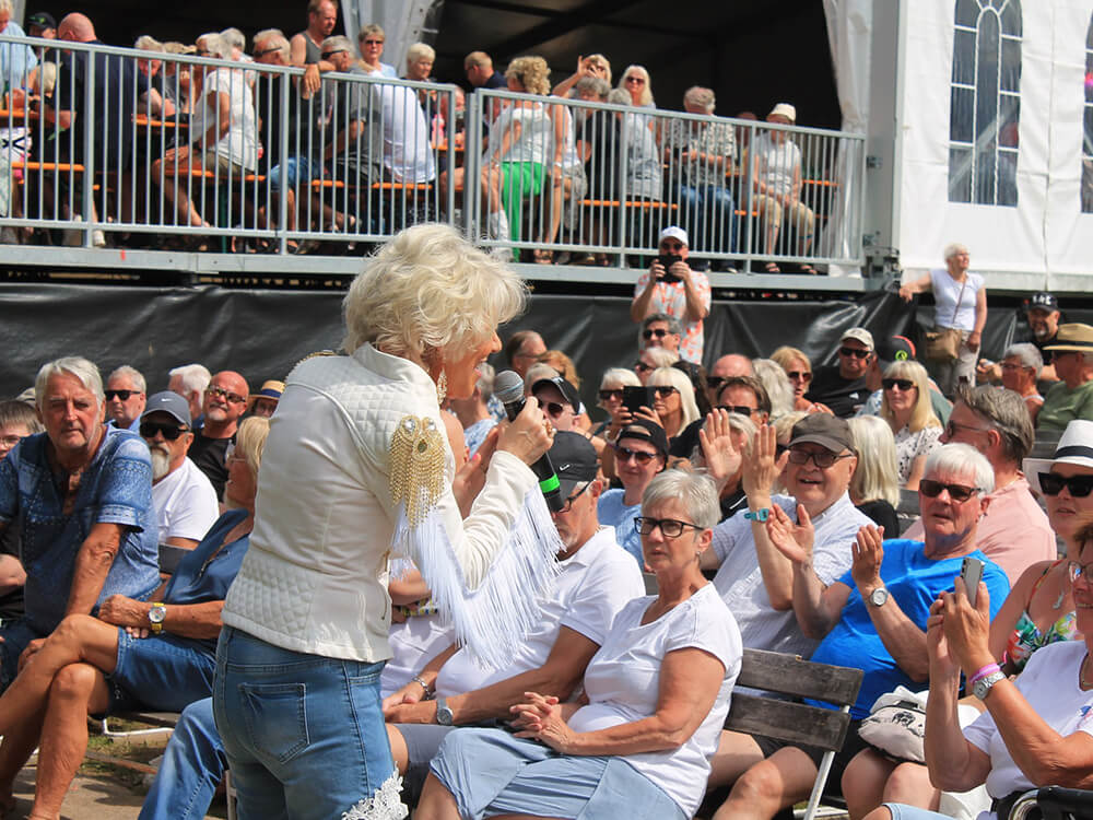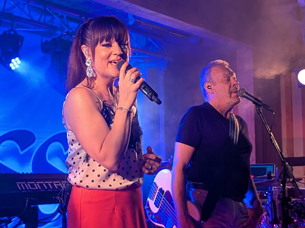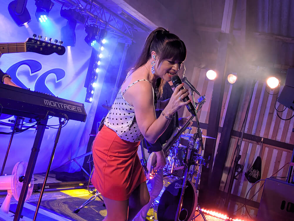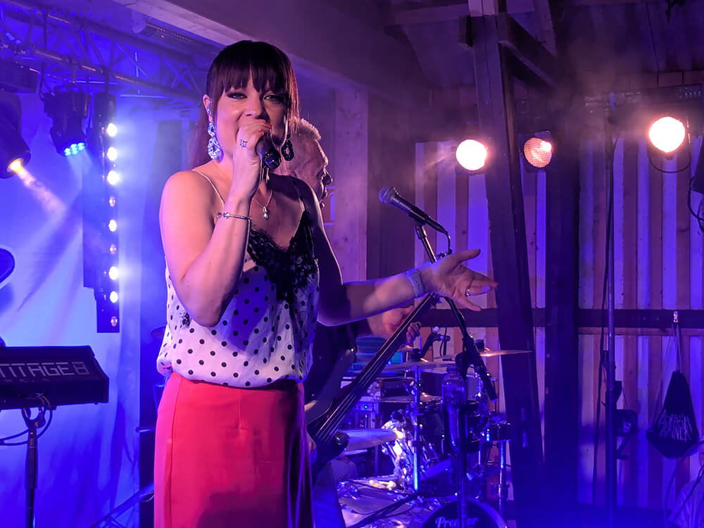Linda är inte bara sångerska – hon är gitarrist och frontfigur med en närvaro som trollbinder publiken.